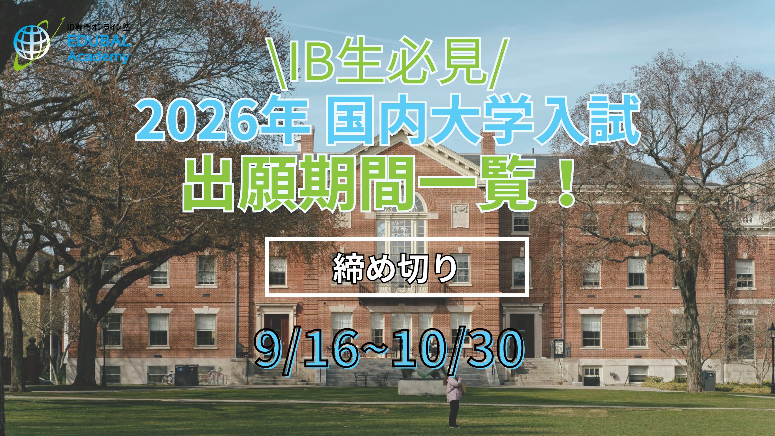 IBDP生の皆さん、こんにちは! IB生専門のオンライン個別塾「EDUBAL Academy」です。IBの最終試験や出願準備で忙しい毎日を送っている方も多いのではないでしょうか。今回は、2026年4月入学を目指す、IB生 […]